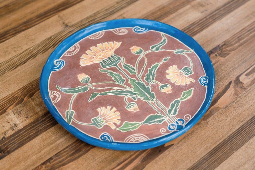 Talerz ozdobny w technice sgraffito.