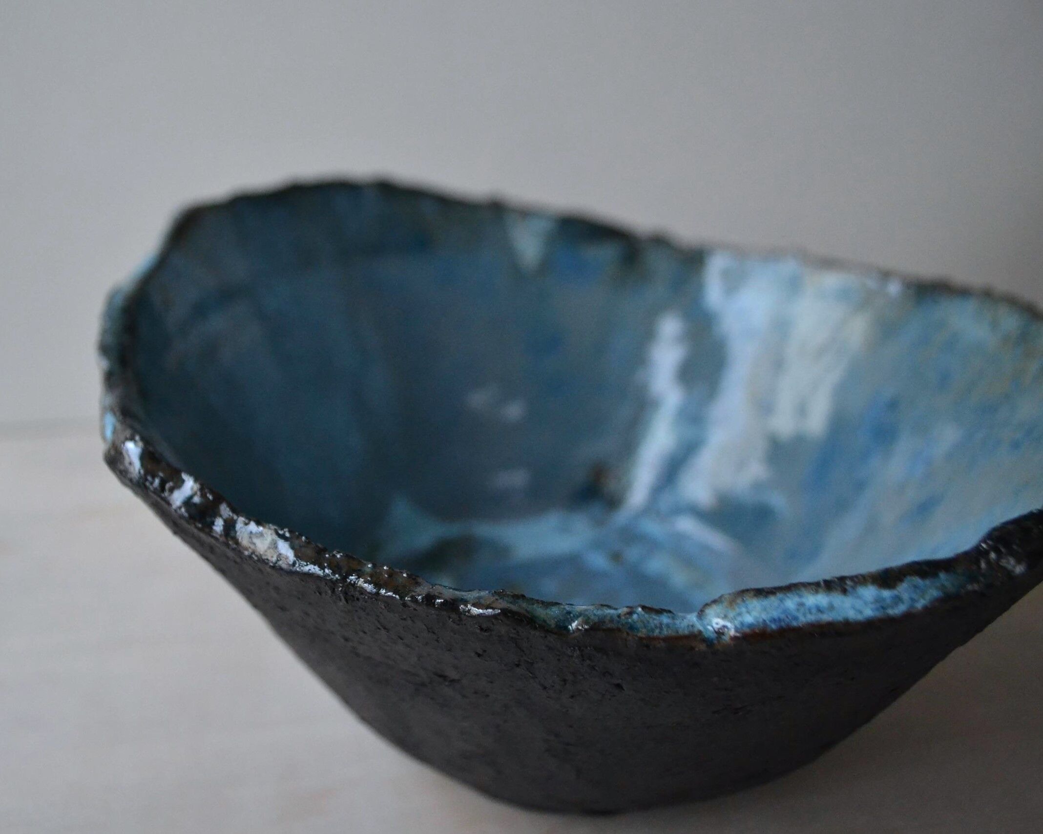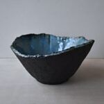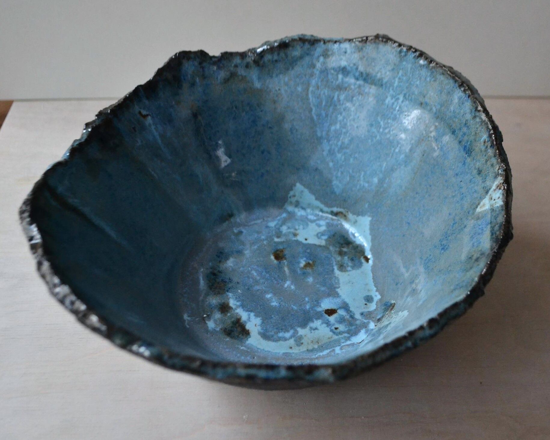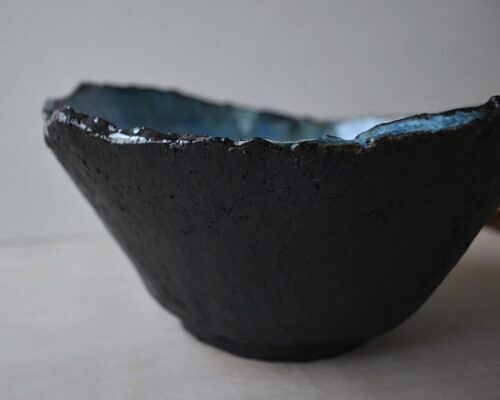 Misa wykonana z czarnej gliny z dużą ilością szamotu. Wewnątrz pokryta niebieskim szkliwem. Na zewnątrz surowa czarna glina.