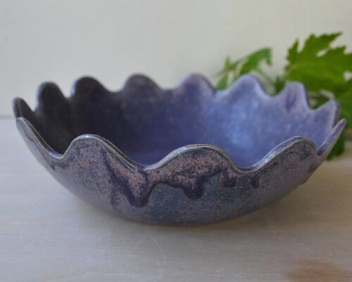 Miska wykonana z jasnej gliny. W całości pokryta fioletowym, matowym szkliwem.